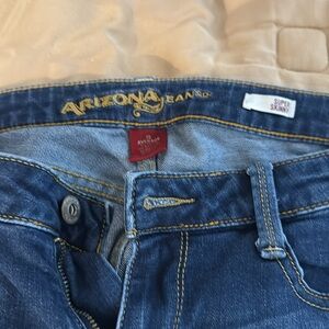 Brand is Arizona dark blue jeans and the size is 13 average