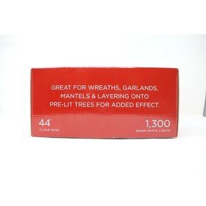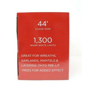 1300 Warm White LED Lights on 44ft CLEAR WIRE w/Remote Christmas Cluster Garland