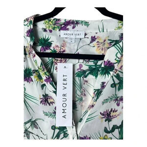 1302. AMOUR VERT NEW WITH TAGS LONG SLEEVE BLOUSE 100% SILK FLORAL PATTERN MED
