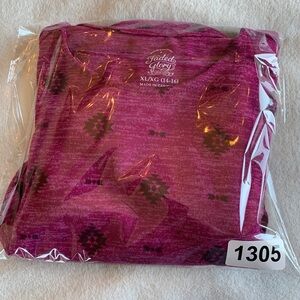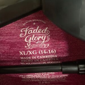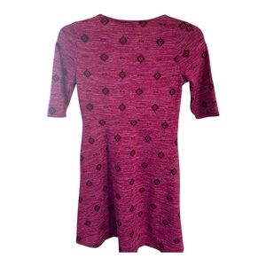 This casual dress by Faded Glory features a vibrant pink base with a subtle black pattern, perfect for everyday wear. Designed with a crew neck and short sleeves, it offers a comfortable fit with its t-shirt-like material. The dress has a simple, straight silhouette that falls above the knee, making it an ideal choice for relaxed outings.