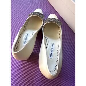 Manolo Blahnik Pumps Silieraso Silk Crystal Ornament Size 37 NEW Heels