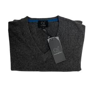 1-32 QI CASHMERE Men's Sweater V-Neck Charcoal-Gray 2XL