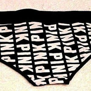 1327 MEDIUM Victoria's Secret PINK Logo Black & White Panties NWT