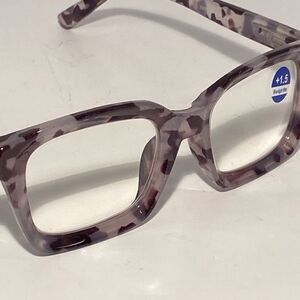 1329 Claudia 1.5 Grey Black Tortoise Oversize Reading Glasses Square Concave NWT