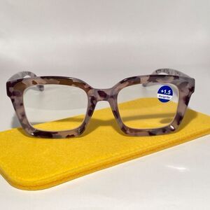 If you're in search of stylish readers that combine fashion and functionality, your quest ends here. These square concave readers are designed to offer both visual clarity and a chic aesthetic. With a magnification power of 1.5 these reading glasses are perfect for individuals who require a little extra assistance when reading or engaging in close-up tasks. Whether you're delving into your favorite novel, browsing the web on your tablet, or tackling work-related documents, the Claudia 1.5 grey and black tortoise Reading Glasses ensure that every word is sharp and clear. Featuring a sleek frame, these glasses add a pop of color and personality to your everyday look. The square concave design not only exudes modernity but also provides a comfortable fit for extended wear.