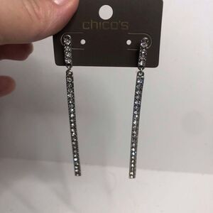 1338 Chico's silver tone long drop CZ bar linear earrings