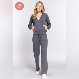 135. New Charcoal Plus Size Hoodie Jacket & Pants Set - Comfort Meets Elegance