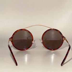 1356 Round Sunglasses Tortoise and Silver Frames Blue Mirror Lens NWT