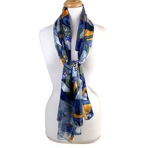 13.5"x60" Picasso BLUE MULTICOLOR POLYESTER HANDROLLED SCARF SHAWL WRAP (B46