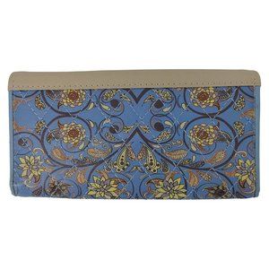 (1378)LOVE'S Blue Paisly Coated PVC & Faux Leather Large Tri-Fold Leather Wallet