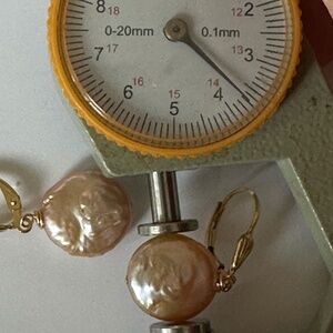 I made these earrings using two very high luster NATURAL colored coin pearls that measure approximately 13.7mm in diameter.