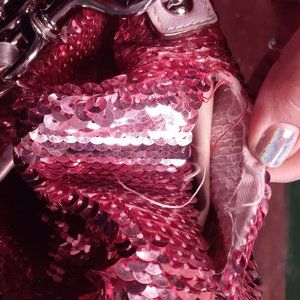 This IS the very rare and limited production XL version pink sequin Coach Spotlight Poppy Bag! Approx measurement: 16"(L), 15 1/4" (H) 6" (W) This beauty is in great condition. The sequins are intact, insides clean, original hangtags and fobs; it does have some wear to the handles, mostly on the trim. needs a little stitching and its perfect i wanted to take it to the hospital but my teen said no give it up mom.... shes a rare one