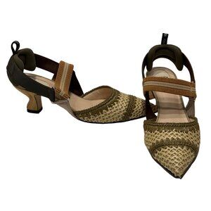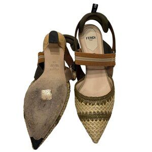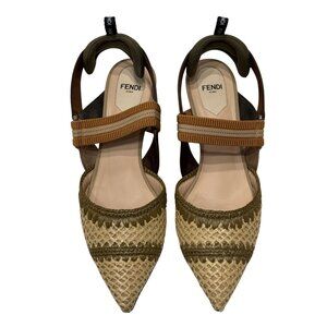 $1390 Multi-color Fendi Colibri Bi-color raffia pumps size 8/38