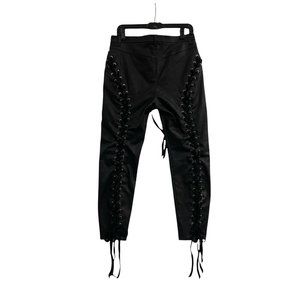 $1390 Unttld El Topo Black Waxed Denim Jeans w/Lace-up Design! Sz 8 IT 44