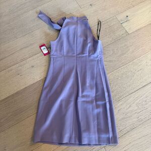 Halter neckline with bow detail; Shift silhouette