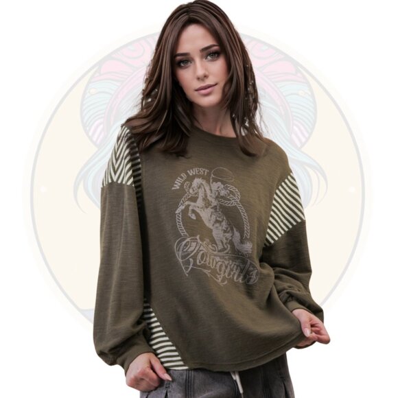 - Oversized Mixed Media Western Graphic Knit Top