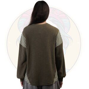 13C Mixed Media Cowgirl Stripe Knit Top in Olive