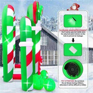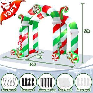 13FT Stereoscopic Christmas Archway Inflatable: You will receive the Christmas candy archway inflatables with stereoscopic design, much bigger than normal holiday inflatables, so it can add more Christmas atmosphere. Everything needed for installation such as ground stakes, metal buckles, tethers and blower are included. Installation instructions are included, please read carefully before installation.