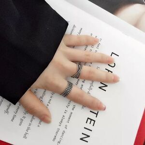 #13 Minimalist 925 Sterling Silver Retro Layered Ring