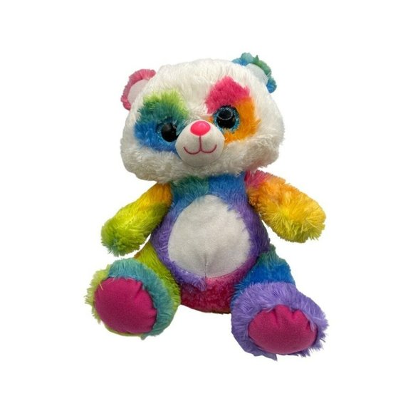 13”Peekaboo Toys Rainbow Colors Colorblock Panda Bear Sparkle Eyes Plush Toy.