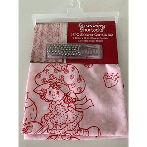 13 Piece Set Strawberry Shortcake Shower Curtain Set And Metal Hooks 72 X 72 NEW