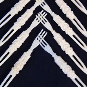 Vintage 13 Mock Ivory Cocktail Forks, Party Picks.