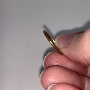 This tiny 14/20 Yellow Gold-Filled Half-Round Wire plain band design ring. These rings were made by a student and they used soft solder instead of gold solder so the ring joints are weak and are silver toned instead of gold.