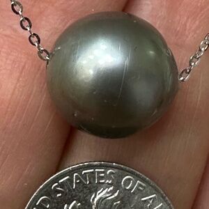 This is a large, (13.1mm), TAHITIAN pearl necklace floating on a 925 Sterling Silver chain.