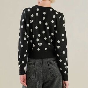 14. Black sweater knit cardigan with polka dots and bows