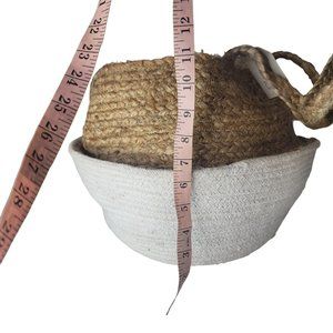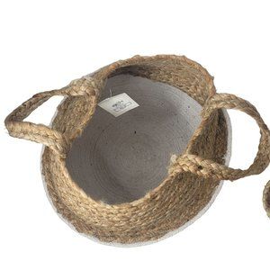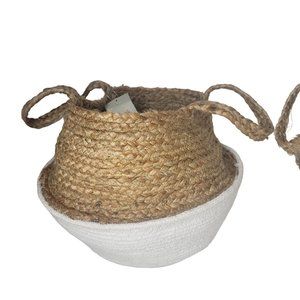 14” Boho Chic Handmade Cotton & Jute White Woven Planters set of 2 new with tag