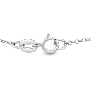 This classic lab-grown diamond necklace features a 1/4 carat solitaire dimaond. The diamond is G-H color and VS1-VS2 clarity. This necklace is in sterling silver and comes with a free 18 inch chain with a spring-ring clasp.