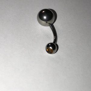 This listing for a 14 gauge 316-L surgical steel belly ring. This listing is for a 1 gem Topaz Orange rhinestone gem. The top ball is 5mm round and has a topaz orange gem, the bottom is just the standard steel ball 8mm round ball. This is a standard 14 gauged curved barbell.
