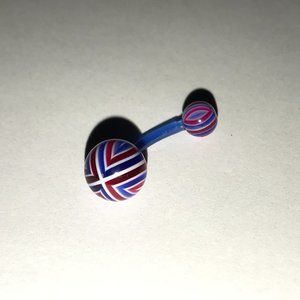 14 Gauge Red, White, and Blue Flag Design Belly Ring