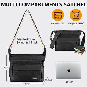 【Roomy Messenger Bag】Size 16.5(L)*5.9(W)*13(H) inches compose 21 litres large capacity satchel. Design with 9 pockets can organize your things in orderly. The mens messenger bag suitable for school,working,traveling and business