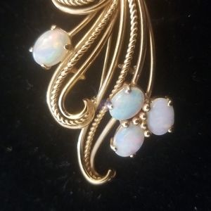 14 KARAT Vintage 40's Gold Stamped Genuine Opal Brooch - Exquisite!