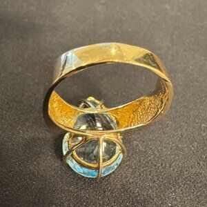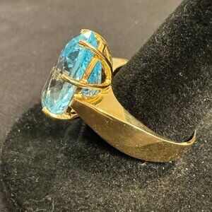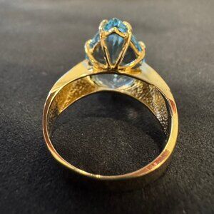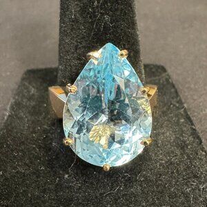 14 KP Large Light Blue Teardrop Topaz Ring, Size 8