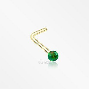 14 Karat Gold Fire Opal Ball L-Shaped Nose Ring