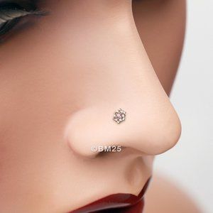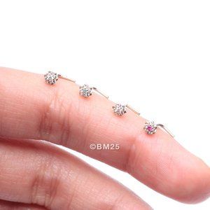 14 Karat Gold Glistening Multi-Gem Flower Sparkle L-Shaped Nose Ring
