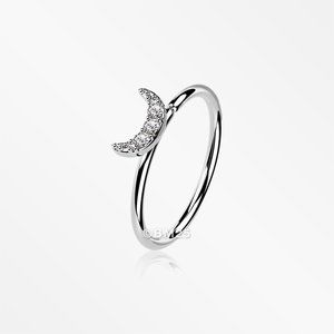 14 Karat White Gold Brilliant Sparkle Crescent Moon Bendable Hoop Ring
