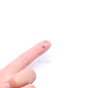 14 Karat White Gold Brilliant Sparkle Flower L-Shaped Nose Ring
