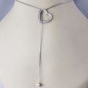 14 Karat White Gold Diamond Heart Lariat Necklace #18745