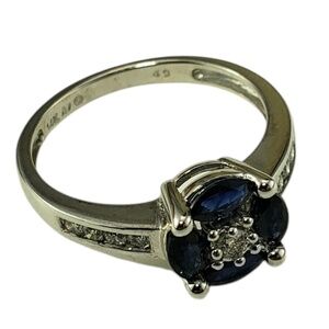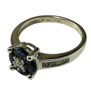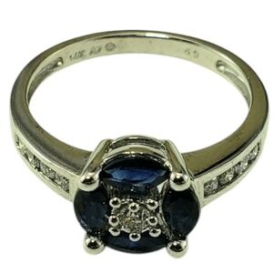 14 Karat White Gold Sapphire and Diamond Ring Size 7 #20034