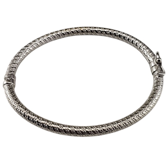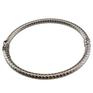 14 Karat White Gold Textured Oval Bangle Bracelet-