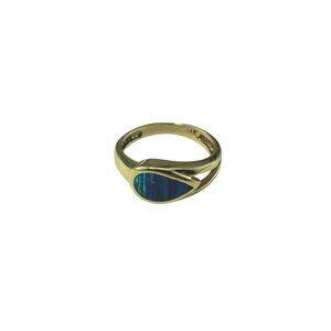 14 Karat Yellow Gold Black Opal Inlay Ring Size 4 #19730
