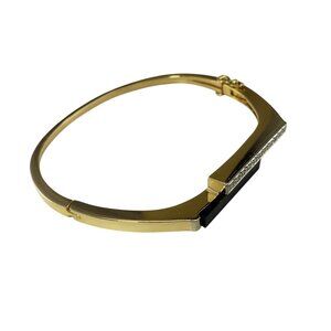 14 Karat Yellow Gold Onyx and Diamond Bangle Bracelet-