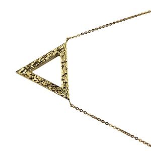 Modern and minimalist, this 14K yellow gold triangle pendant necklace is a sleek accessory that exudes understated elegance.