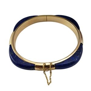 This elegant bangle bracelet features rich 14K yellow gold paired with striking lapis lazuli, creating a timeless blend of luxury and natural beauty.