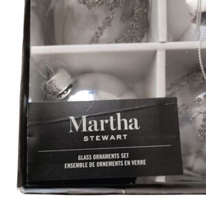 14 Martha Stewart Silver Glass Ornament Set Christmas Beaded Glittery Bedford. Condition is pre-owned with no chips or cracks. There are 14 ornaments. The box has wear. Hard to find style. Please see all photos for detailed condition.