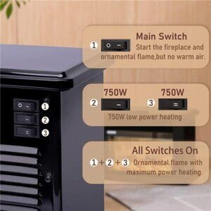 🧿[ Mode select ] - ①Switch 1: the main switch with imitation of real wood fire scene and flame jump (when the internal LED works in the low voltage of 12V) is ornamental and power saving without heating effect; ②Switch 2: 750W low heating; ③Switch 3: 750W low heating (Note: 1500W high heating occurs only when Switch 2 and Switch 3 are turned on)