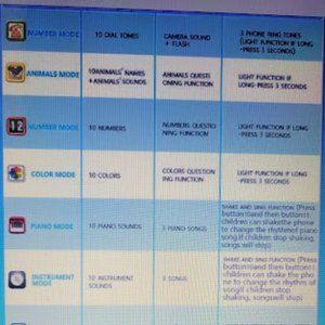 14 Mode Learning, Play Cell Phone Educational Toy for 3+ Year Olds Modes include, colors, animals, music, phone and camera play, stories and more. Great for little ones to have their own "phone" instead of your phone.